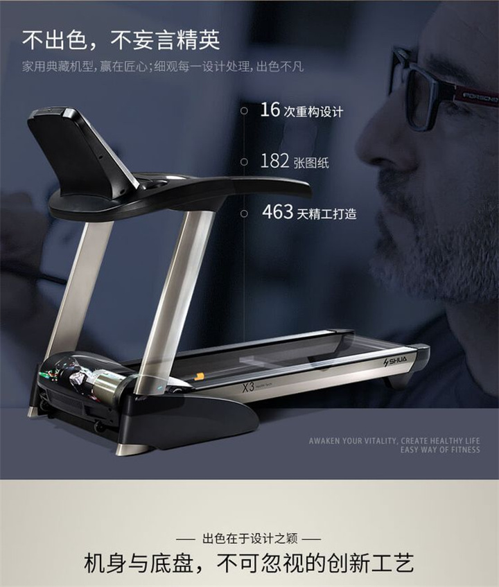 舒华I5智能家用跑步机是由舒华体育联合中国体育科学学会、上海体育大学运动科学学院教授陆大江等权威机构、专家共同研发设计。独特之处在于它结合国际科学跑步研究理论,能够针对不同用户进行运动能力测试,并根据测试结果生成因人而异的有氧运动处方。这意味着每个用户都能得到一个适合自己的运动方案,从而更好地达到运动效果。这一创新技术可以确保用户在运动过程中能够保持在最佳的区间状态,从而提高运动安全性和有效性。