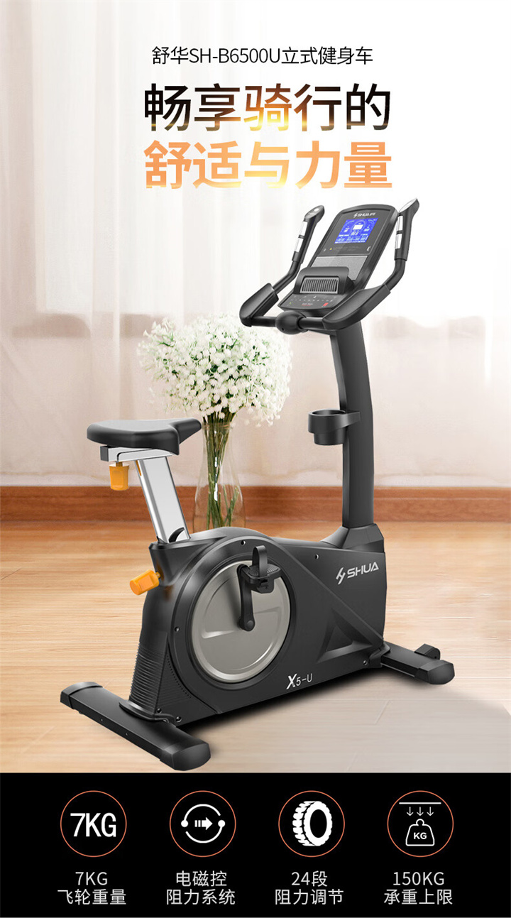 舒华立式商用健身车SH-B9100U(V10)触屏版拥有超大显示和操作屏幕, 可以任意设置阻力、时间和距离等参数,还可以即时显示心跳和转速等数据,同时,SH-B9100U提供多项科学运动处方,更轻松掌握运动节奏。