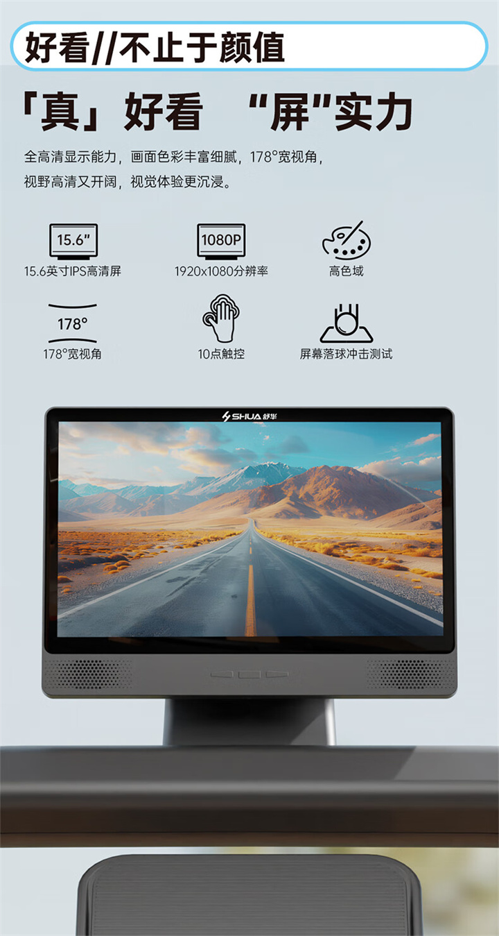 CQ9电子推荐健身器材-舒华商用电动跑步机SH-T6500拥有10.1寸IPS高清触摸屏、Z型动感时尚外观设计、70×150mm精钢立柱机身、F级高效静音马达、520mm商用豪华跑带和35mm双层全跑台减震跑板等优势,让您享受科学跑步。